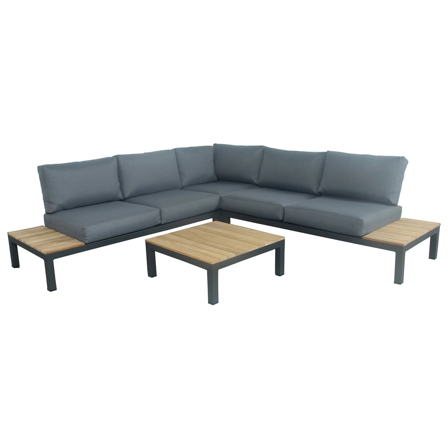 Tegenwoordig zijn loungebanken in de tuin helemaal in. Dat snappen wij wel, want niets is fijner om in de zomer te kunnen relaxen op een mooie loungeset. Deze EL TORRO loungeset van Royal Seasons bestaat uit een hoekbank en een salontafel. De kussens hebben een mooie lichtgrijze kleur en door de houten elementen bij deze tuinset passen deze tuinmeubelen in elke tuin of op het terras.