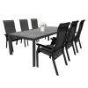 Ben jij op zoek naar een comfortabele tuinset? Dan is deze prachtige dining tuinset wellicht geschikt voor jou. Deze set bestaat uit 4 FABIO DINING tuinstoelen inclusief de SOL tafel 220 x 100 cm. De antraciet stoelen zijn gemaakt van aluminium en wicker. Ook hebben deze stoelen een verstelbare rugleuning, waardoor deze op iedere gewenste stand gezet kan worden. Deze tuinstoelen sluiten perfect aan bij de SOL tafel. De tafel heeft een hoogte van 75 cm en is gemaakt van aluminium frame. Het tafelblad is van keramiek en heeft een mooie steenlook. Deze tuinset biedt maar liefst zes royale zitplaatsen.
