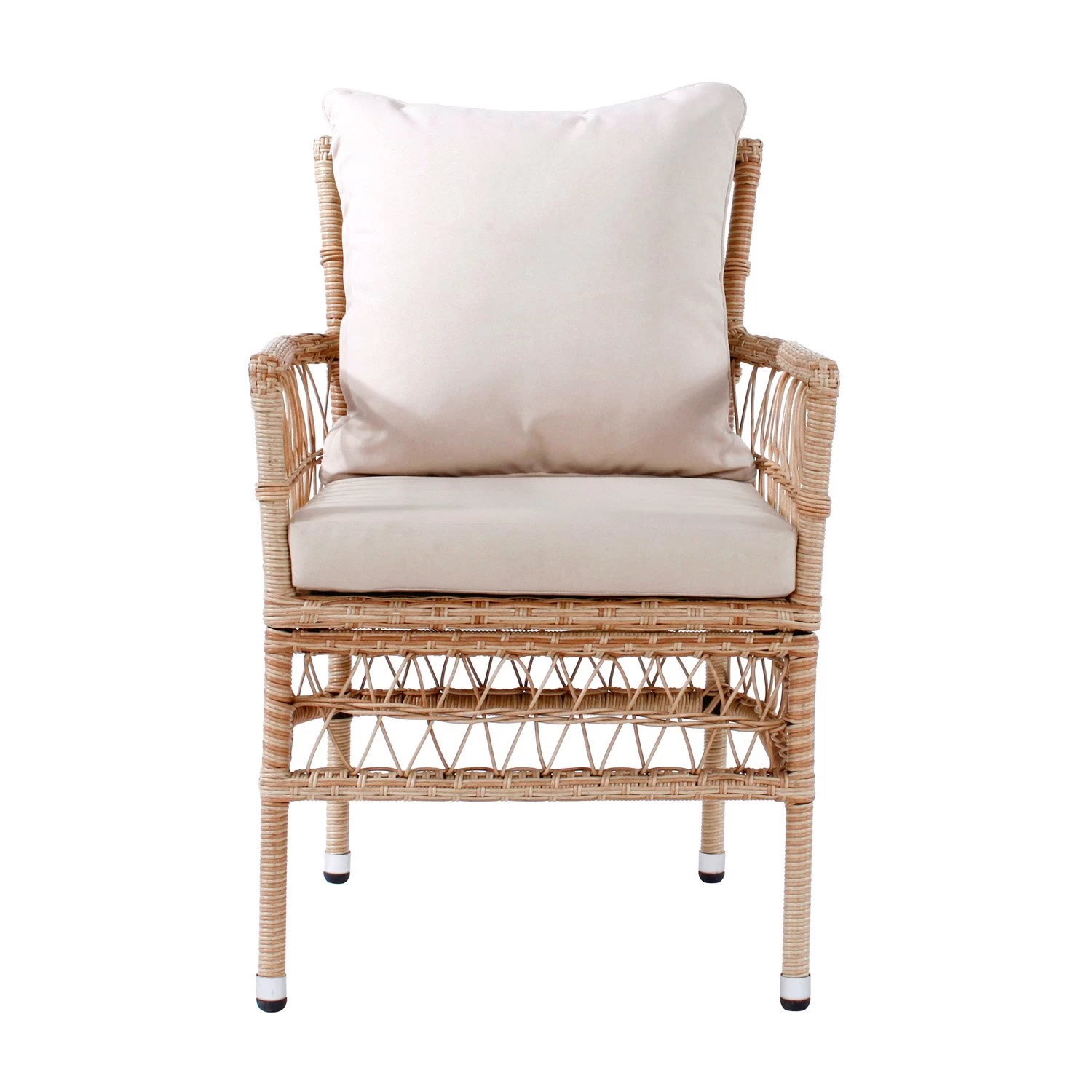 De MAURITIUS diningstoel is een stijlvolle en comfortabele eettafelstoel voor buiten. De stoel heeft een metalen frame dat is afgewerkt met hoogwaardig wicker in de kleur beige. De afmetingen van de stoel zijn B 61 x D 65 x H 88 cm, wat zorgt voor een comfortabele zithouding. De MAURITIUS diningstoel sluit mooi aan bij de andere producten uit de MAURITIUS-serie en wordt geleverd met kussens voor extra comfort.