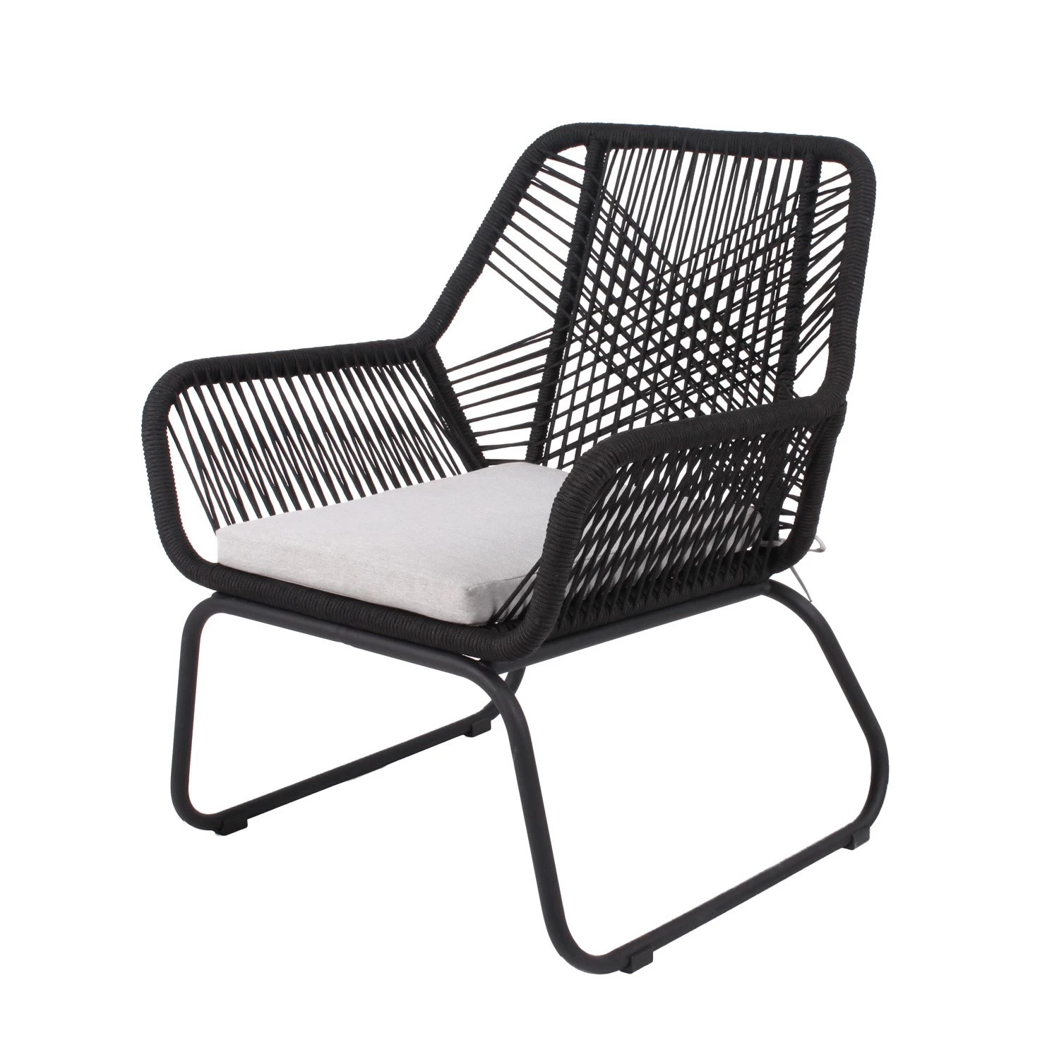 - Materiaal: De loungestoelen hebben een stalen frame welke zijn afgewerkt met zwart touw (5mm dik)